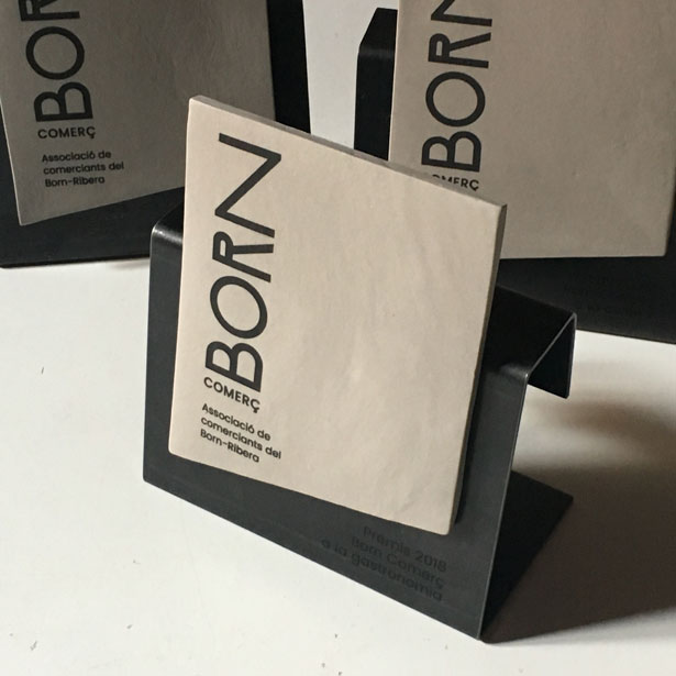 Premis Born Comerç 2019 Porcellana color gris pedra i serigrafia ceràmica, cocció a 1.240 graus base de ferro negre
