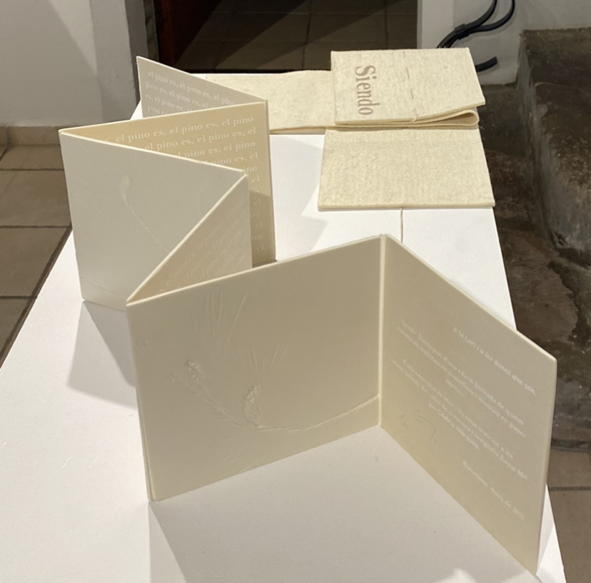 “Siendo” és un llibre d’artista realitzat en ceràmica. Està format per 6 fulles de porcellana gravades, muntades sobre paper japonès serigrafiat.