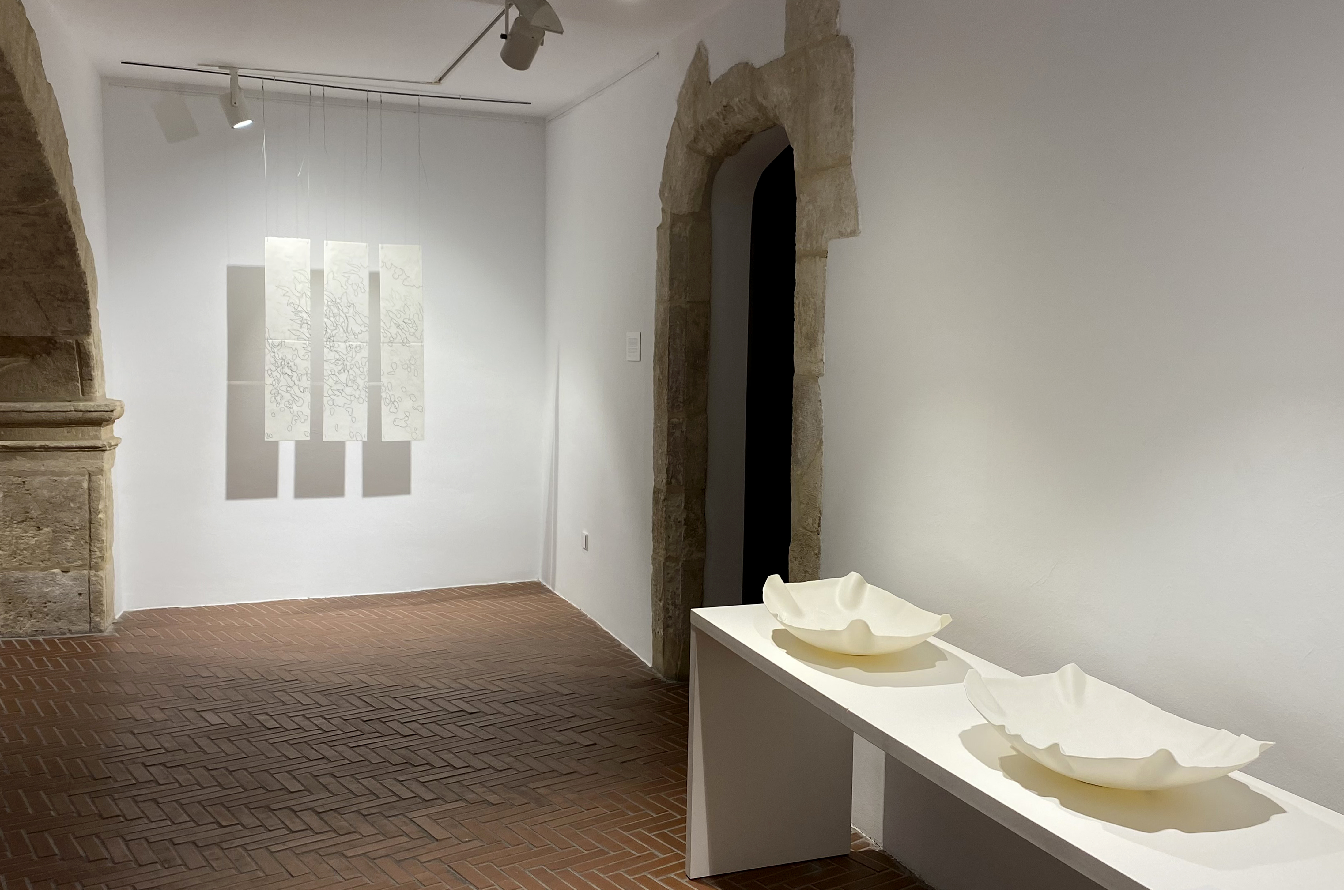 Les peces estan fetes amb una pasta de porcellana que conté paper per tal de recrear l’aspecte d’aquest material, imitant el suport sobre el qual vaig dibuixar la seqüència d’ombres. La imatge reprodueix, mitjançant calca ceràmica digital, el dibuix original a mida real i està fragmentada en 6 parts. Cosa que, d’una banda, fa al·lusió a la fragmentarietat de la nostra percepció i, d’altra, emfatitza la idea de moviment ja implícita en el dibuix.